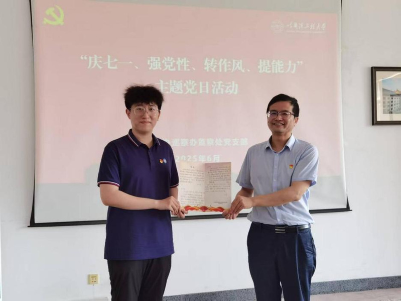 全体党员结合“2025年师生党员教育培训第一课”学习内容与工作实际进行学习研讨。大家一致表示,要进一步强化政治担当,提升履职能力,锻造过硬作风,推动落实中央八项规定精神落地见效、走深走实,以作风建设为引领,将学习成果转化为监督执纪的实际成效,为学校高质量发展提供坚强纪律保障。